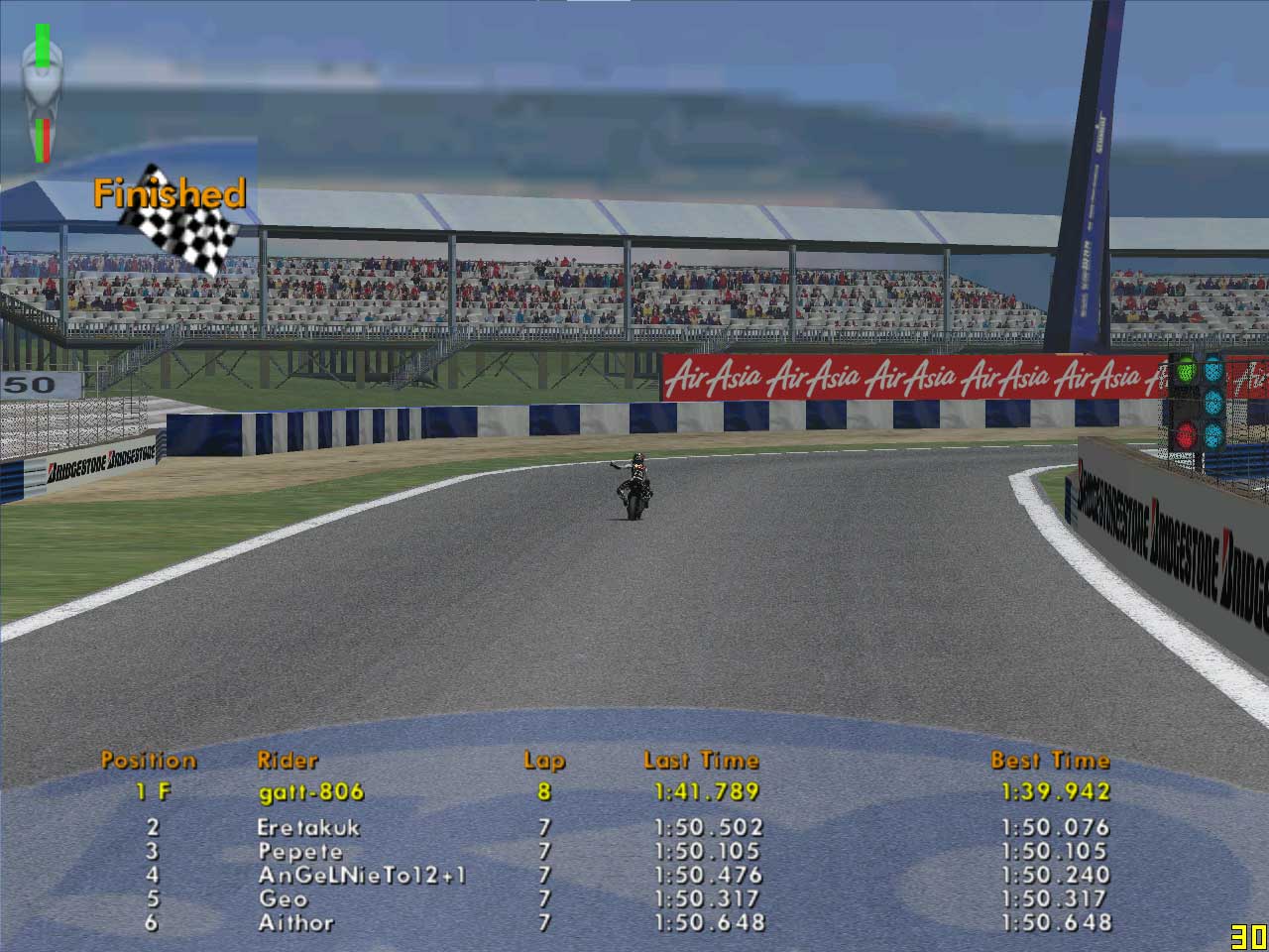 するとこのコース、AIがよく走る。今日は10レースくらいやって1勝できただけ。まず最初の目標はAIに勝つことですな。最終的にはWSSでスーパーバイクに勝つ。そしたら、motOffで35秒台くらいまでいく…といいな。おかげでスーパーバイクの方はかなり確認作業が済みました。たぶんPhysicsはこのままリリースしても大丈夫そうなレベルです。