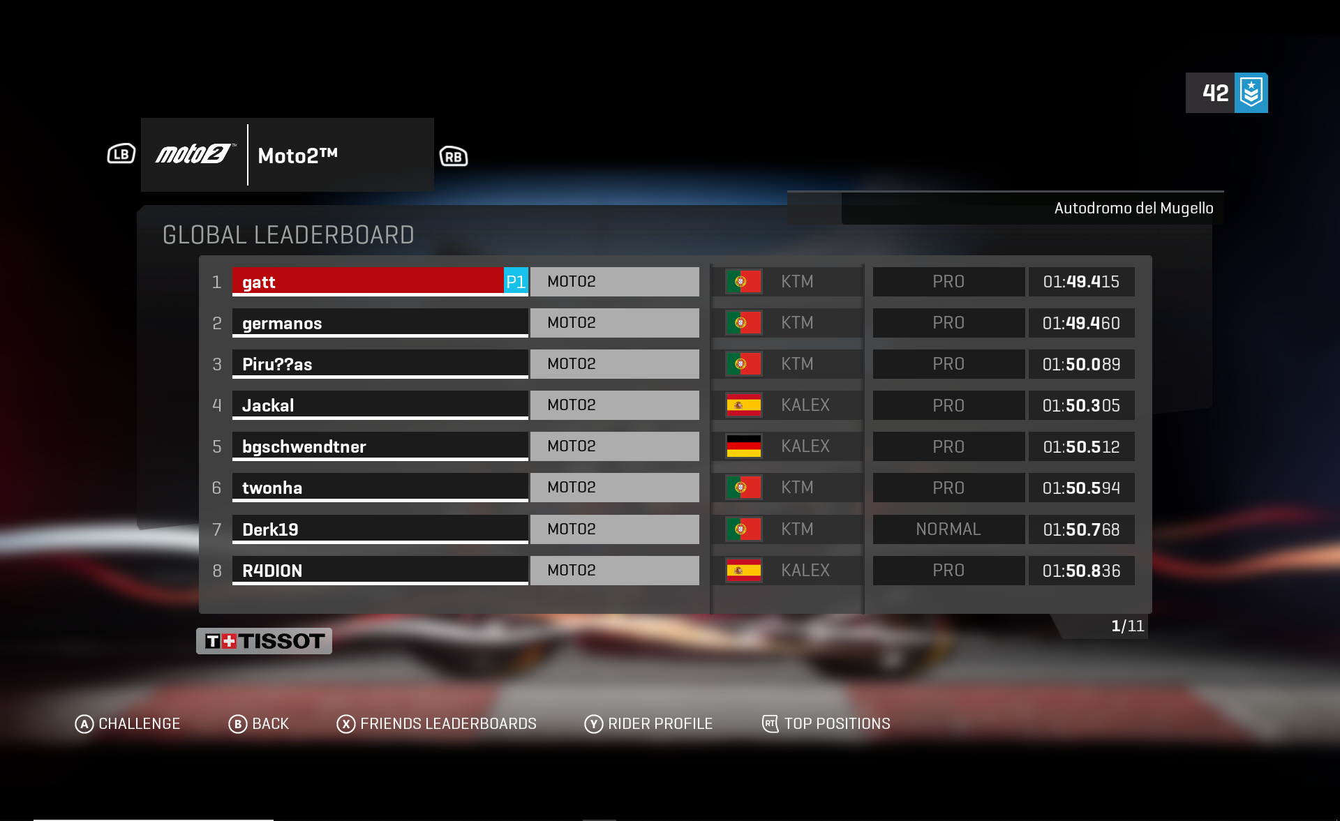 まだまだムジェロを走り込んでいます。マシンチェンジでMoto2のリーダーボードのトップに立てました!
